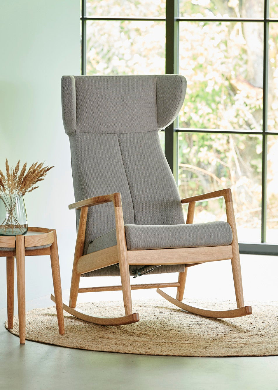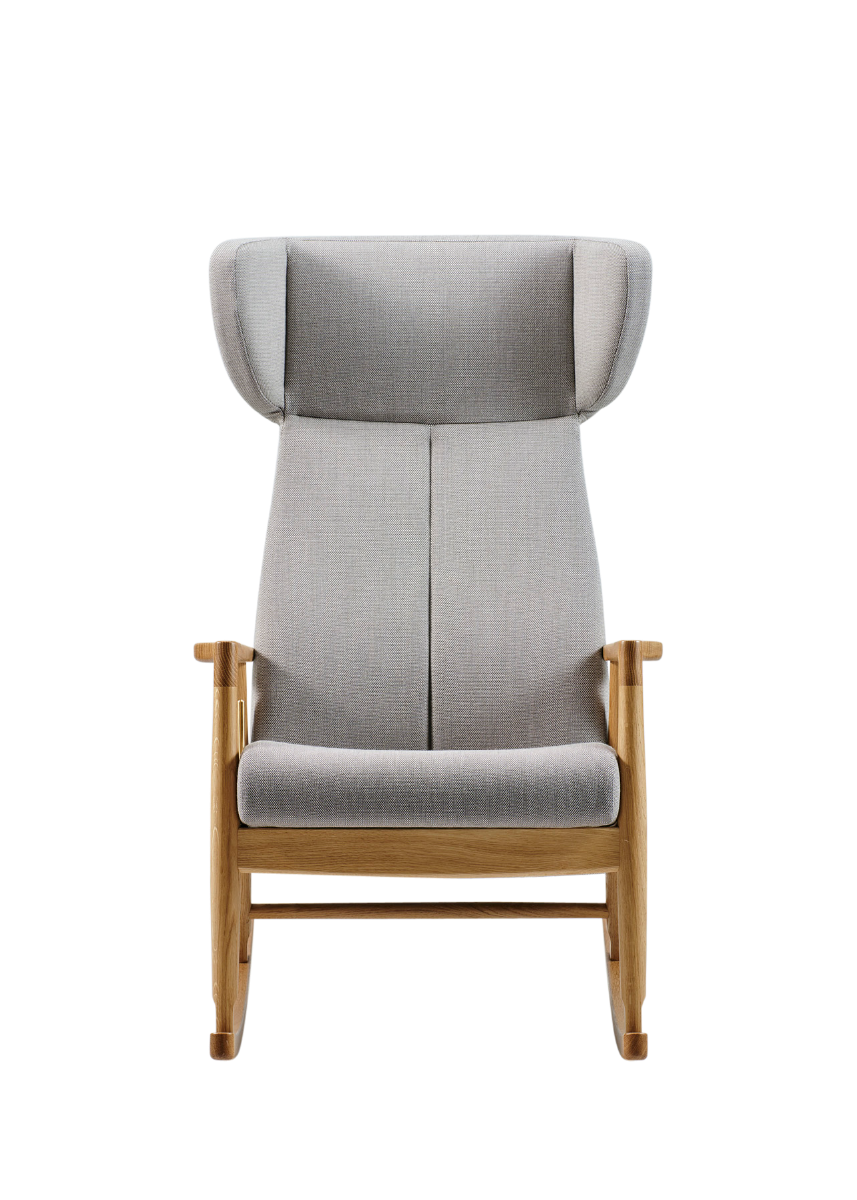 Gyngestolen er som seriens øvrige hvilestolsmodeller designet med stort fokus på siddekomfort, god rygstøtte og mulighed for trinløs regulering af ryggen med det udvendige låsegreb i messing. Den øverste del af ryggen kan ligeledes indstilles for optimal støtte af nakken – uanset ryglænets hældning.