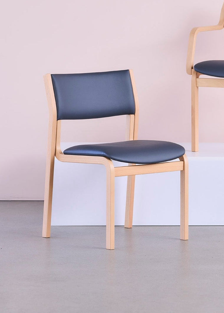 Stolen har kvalitets polstring i både sæde og ryglæn, så det er behageligt at sidde med til de lange møder eller konferencer. Stolen laves i kvalitetsmaterialer og det kraftige træstel, kombineret med det klassiske design gør at stolen holder i generationer. Siddehøjde, ryglæn mm. tilpasses efter unikke mål.