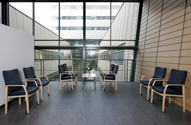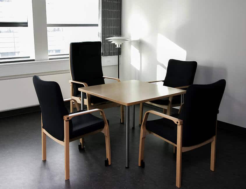 Aalborg Universitetshospital indrettet med Metroline serien. Serien er udgået i dag – Men se en lang række af Farstrups andre serier på hjemmesiden, som alle er velegnet til indretning af institutioner som hospitaler, plejehjem, o.l.