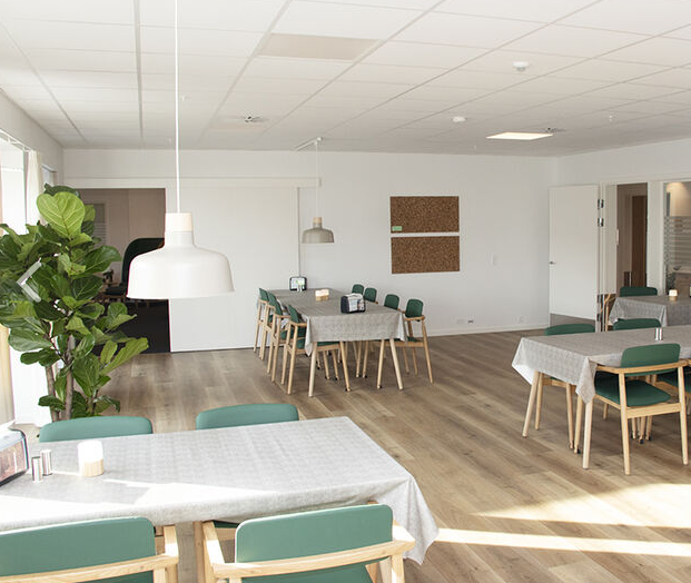 Friplejehjemmet i Esbjerg er nyt og moderne, men med en indretning der bærer præg af dansk design og hyggelige omgivelser, får plejehjemmet liv og en hjemlig atmosfære.