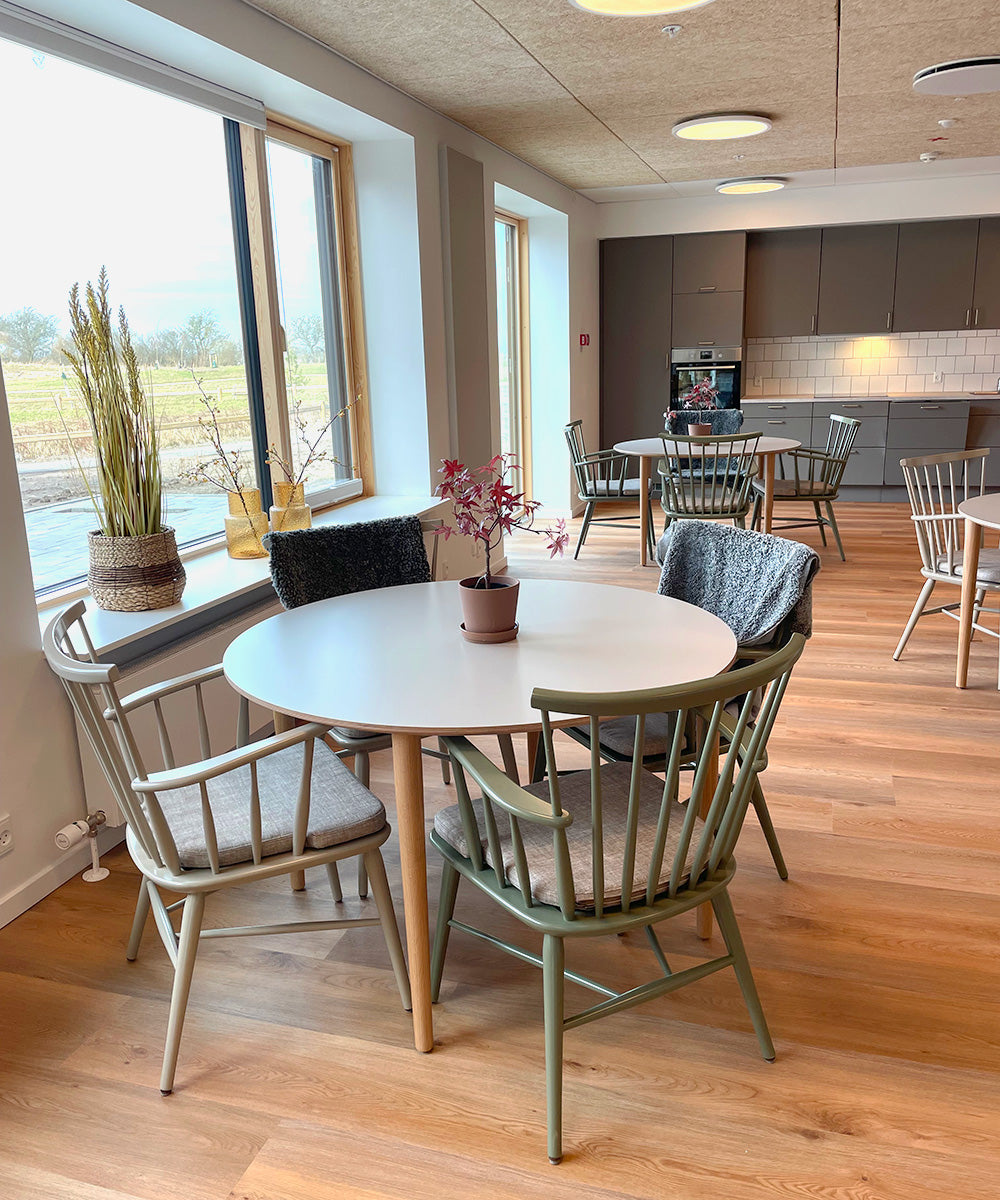 Moderne og bæredygtigt plejehjem med fokus på hjemlighed, samvær og aktiviteter i hverdagen.