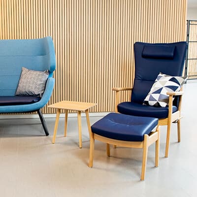 Fællesarealet er indrettet med Plus 5910 med tilhørende skammel 5990 – som er en hvilestol med komfort i særklasse.